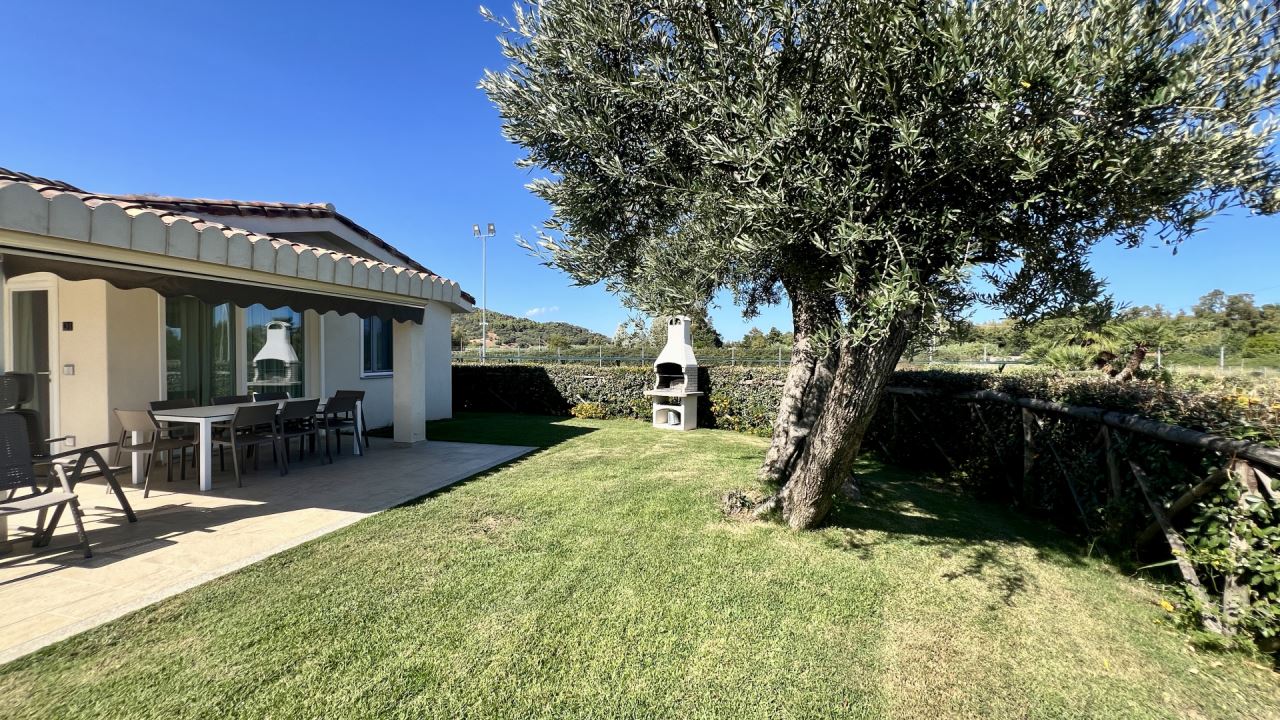 La villetta è un quadri-locale con giardino (prato verde) su un unico livello.