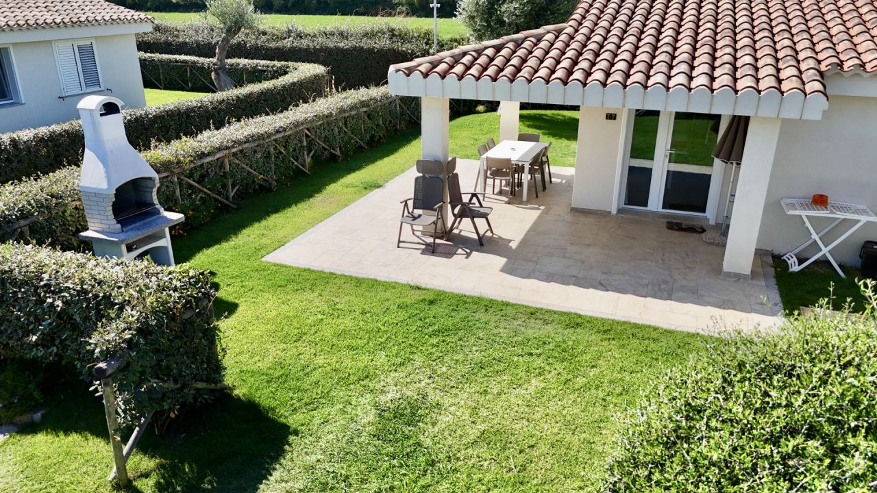 La villetta è un tri-locale con giardino (prato verde) su un unico livello.
